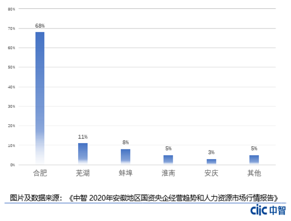 作為省會(huì)城市,合肥市在招商引資、產(chǎn)業(yè)結(jié)構(gòu)優(yōu)化方面存在較大的優(yōu)勢(shì),對(duì)人才的需求力度也較大。從數(shù)據(jù)來(lái)看,合肥城市崗位需求量占比68%,排在第一位,緊隨其后的是蕪湖11%、蚌埠8%,三座城市位列省內(nèi)城市前三位。除此之外,淮南、安慶等地的人才需求也較高。